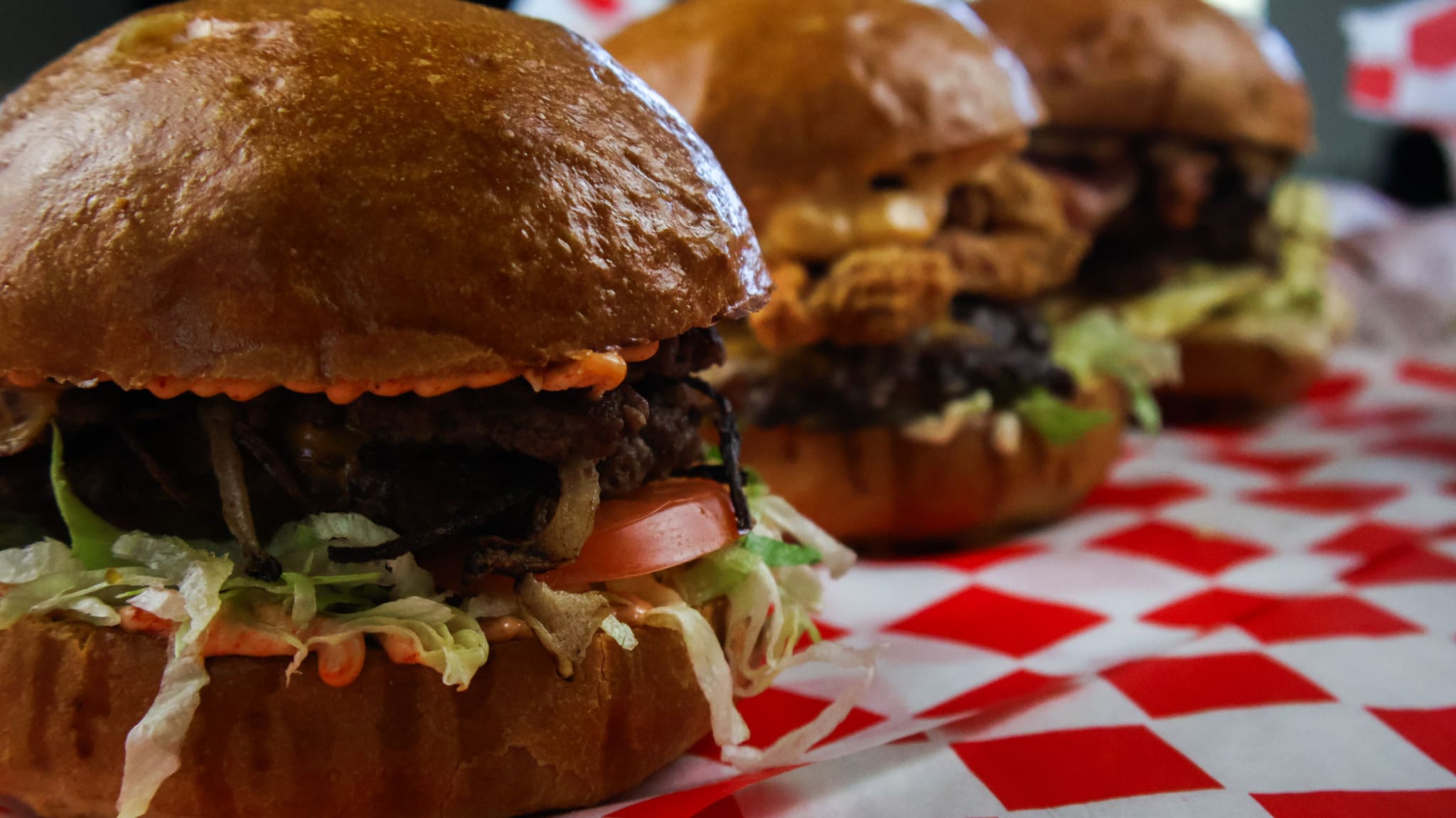 Brioch kruh, 160g 1oo% govedine, truck zos, čebula, solata ledenka, paradajz, kisle kumarce