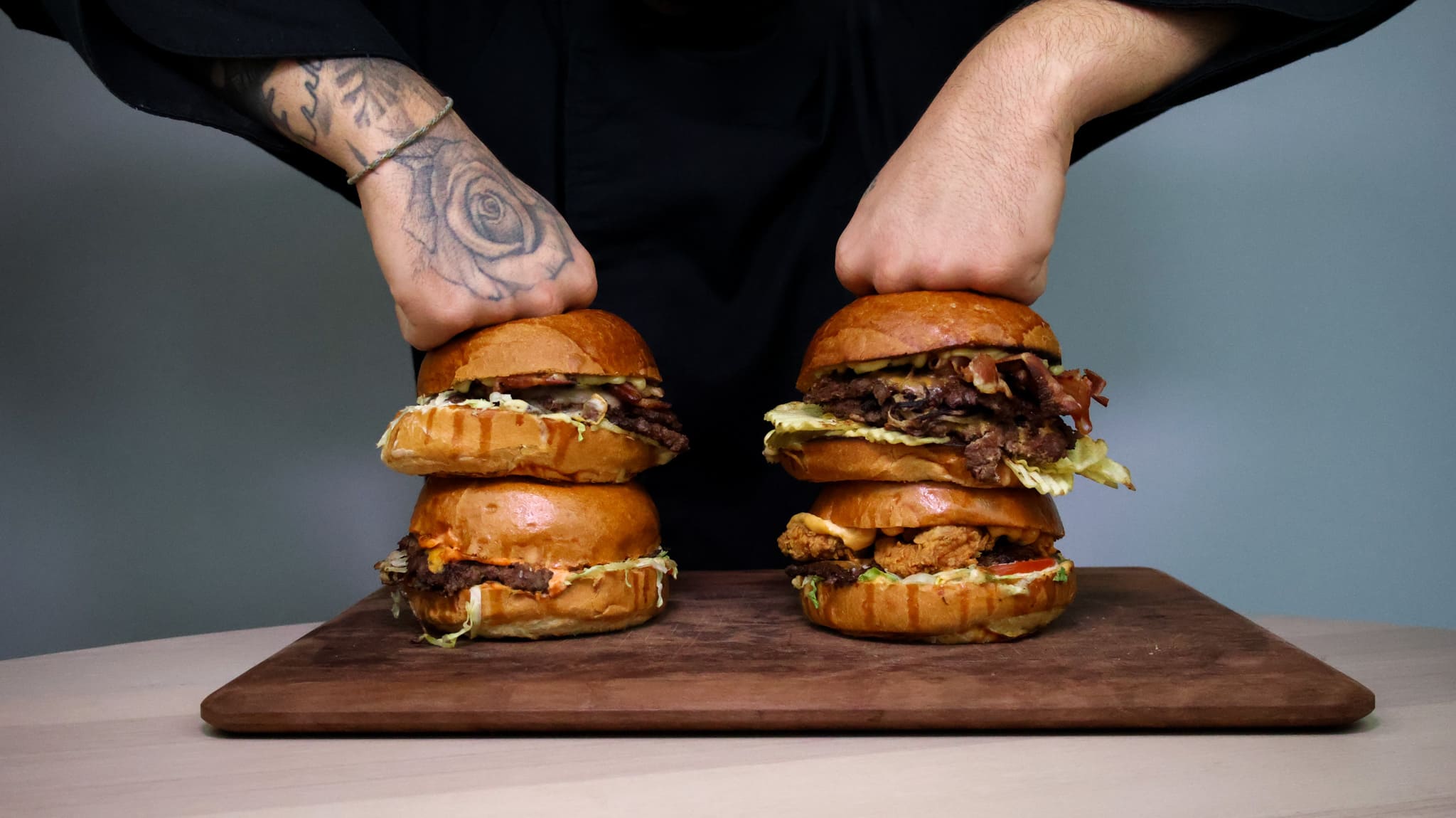 Brioch kruh, 160g 100% govedina, Fior Di Latte Mozzarela, Sriracha zos, okisana rdeča čebula, Chorizo